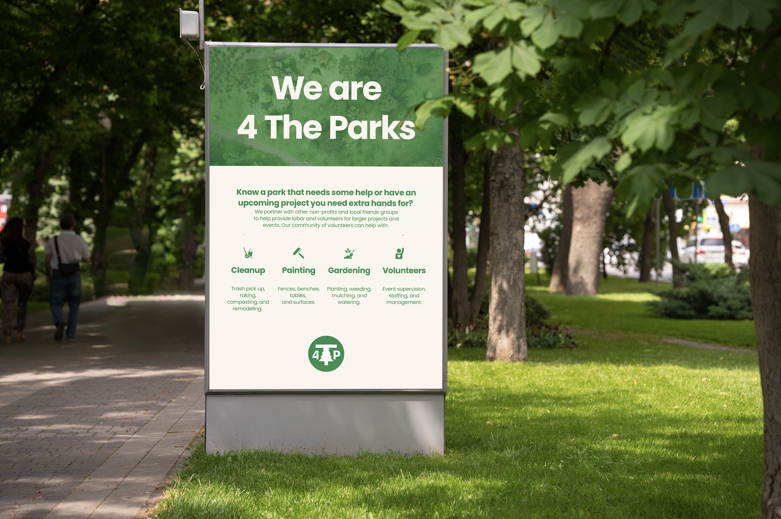 Tasked to design the logo and brand identity for 4TP, I developed a nature-inspired visual system that reflects the nonprofit’s connection to outdoor spaces. The work established a cohesive and professional foundation for the brand.